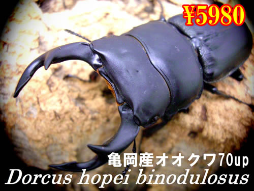 | 直線的な大アゴが特徴で、台湾では非常に貴重な種類です。オオクワガタの中でも大型の種類で、♂80o近くにまで成長することがあります。 今回は、♂70up成虫♂単品です |