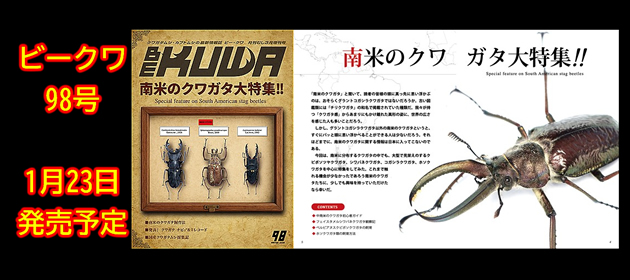 | 南米のクワガタ大特集!! 6 中南米のクワガタ初心者ガイド 馬場 勝 28 フェイスタメルシワバネクワガタ観察記 アンデス-天空の大地を行く 飯島 和彦 34 ホソクワガタ類の飼育方法 村田 真一 38 ペルビアヌスクビボソツヤクワガタ飼育法 クワガタ依存症 44 隙間産業的飼育 安部 浩平 48 日本産クワガタムシ採集紀行 魔法少女朽木バエのゆるふわ採集記 朽木バエ 56 HirokAのヘラ2漫遊記 河野 博史 58 虫のためなら、どこへでも! 野澤 亘伸 66 週末はオオクワ三昧 粕谷 伸孝 72 KLBコラボ企画 美形オオクワガタコンテスト予選投票のお知らせ 74 ホペイの世界 山本 良樹 80 たえたそちゃんねる(裏) たえたそ 84 中南米のクワガタ初心者ガイド 解説 馬場 勝 92 山梨オオクワ採集 台木の上にも3年! 長坂 敬司 94 きれいな標本の作り方 土屋 利行 98 発表! 第25回 クワガタ飼育レコード大賞 100 クワガタ チビ♂&♀レコード 113 クワガタ チビ♂&♀レコード一覧表 116 21世紀版 クワガタムシ飼育のスーパーテクニック 小島 啓史 120 読者と執筆者と編集部をつなぐ井戸端会議室 |