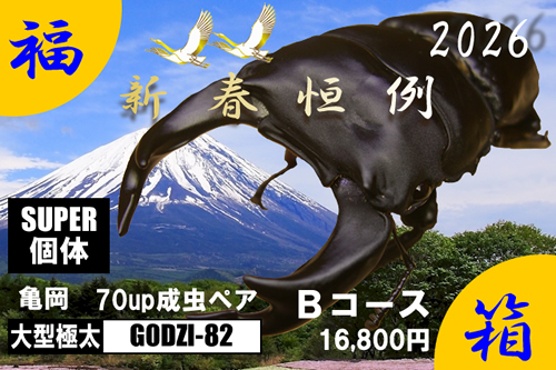 ZV-126 | Bコース | SUPER個体【GODZI82】血統70up成虫ペア | 16800円(税込) |