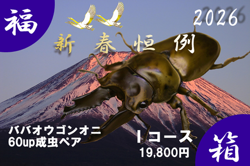 ZV-133 | Iコース | ババオウゴンオニ60up成虫ペア | 19800円(税込) |