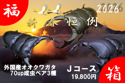 ZV-134 | Jコース | 外国産オオクワガタ70up成虫ペア3種 | 19800円(税込) |
