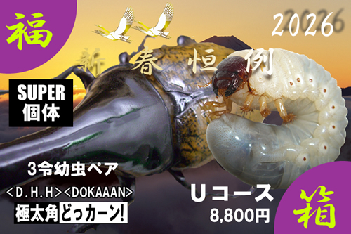 ZV-145 | Uコース | SUPER個体【どっカーン】血統3令幼虫ペア | 8800円(税込) |