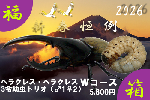 ZV-147 | Wコース | ヘラクレス・ヘラクレス3令幼虫トリオ(♂1♀2) | 5800円(税込) |